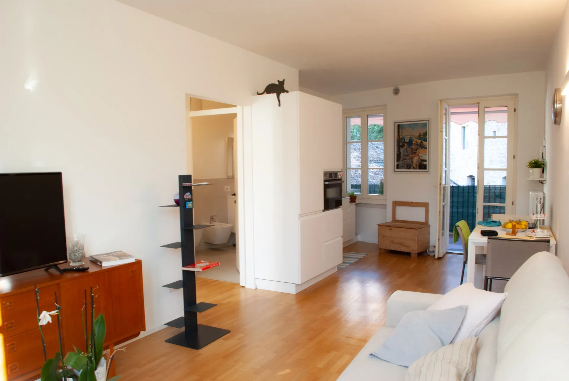 Questo bilocale accogliente e ben arredato presenta una camera da letto matrimoniale, un salotto con divano letto e una cucina completa, offrendo tutto ciò di cui gli ospiti hanno bisogno per un soggiorno confortevole e rilassante. Inoltre, un posto auto assegnato a pochi metri dall'appartamento garantisce comodità e praticità durante il soggiorno.