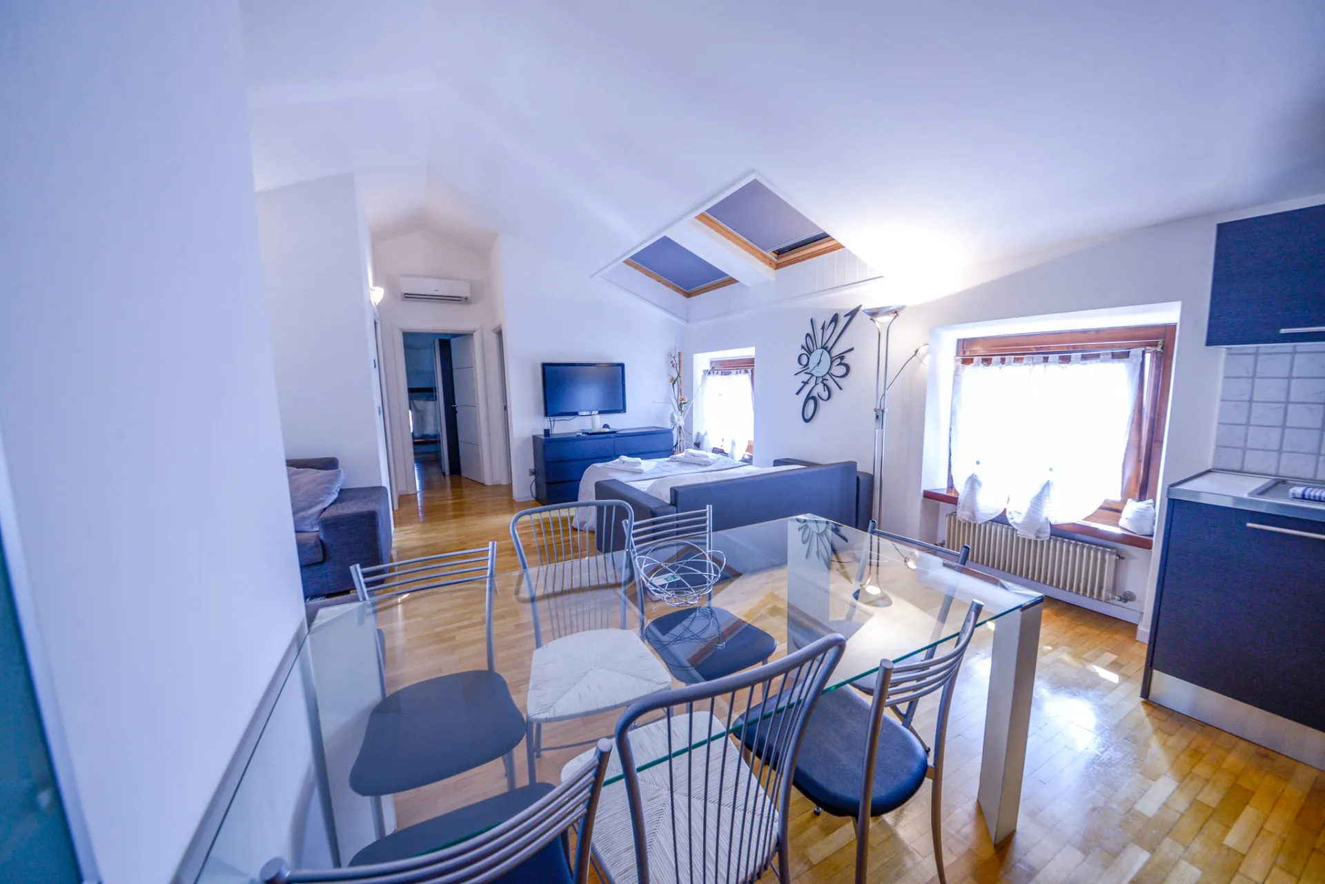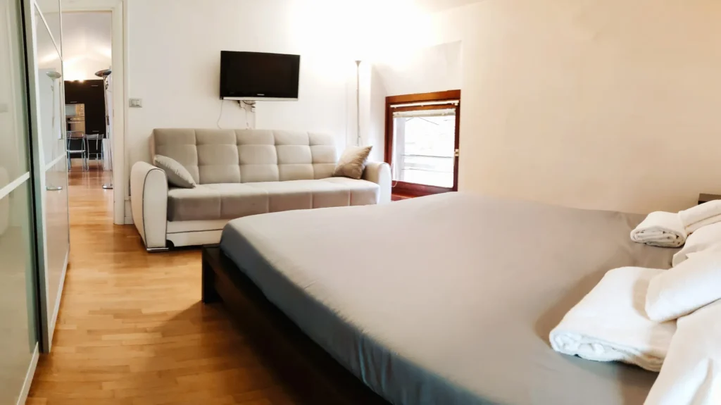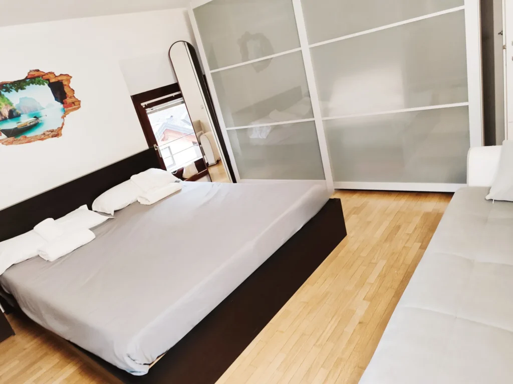 L'appartamento è al quarto piano raggiungibile tramite scale. All'interno, gli ospiti potranno godere di una camera da letto matrimoniale accogliente e confortevole, una camera da letto con tre letti singoli, perfetta per famiglie o gruppi di amici. Il soggiorno è dotato di un divano letto per accogliere eventuali ospiti supplementari. La cucina è attrezzata con tutti gli utensili necessari per preparare deliziose cene in casa.