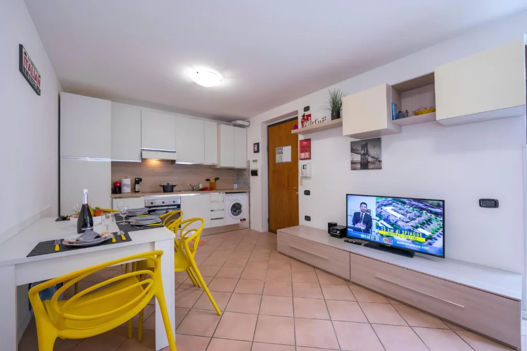 L'appartamento dispone di un ampio soggiorno, arredato con tutto il necessario, include una cucina completa per preparare deliziose cene e un comodo divano letto.