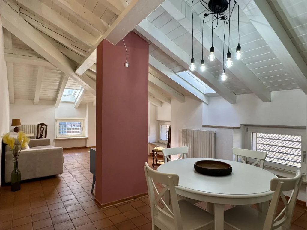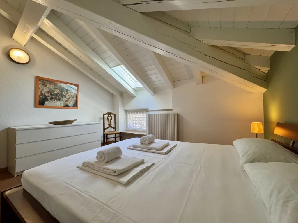 Riva Amor Loft è un appartamento mansardato recentemente ristrutturato, situato nel cuore del centro storico di Riva del Garda, in posizione comoda a tutti i servizi, ristoranti e negozi. L’alloggio si trova all’ultimo piano e si distingue per le travi in legno a vista e l’atmosfera calda e accogliente. È composto da una camera matrimoniale luminosa, arredata con semplicità ed eleganza, e da un soggiorno con comodo divano letto, ideale per ospitare fino a quattro persone. La zona giorno include una cucina attrezzata con piano cottura, forno, frigorifero e tavolo da pranzo. Il bagno, originale e funzionale, è dotato di vasca con doccia. Le finestre e i lucernari rendono gli ambienti luminosi e ariosi, offrendo scorci sui tetti e sulle montagne circostanti. Soluzione perfetta per chi desidera vivere il centro a piedi, a pochi passi dal lago e dalle principali attrazioni.